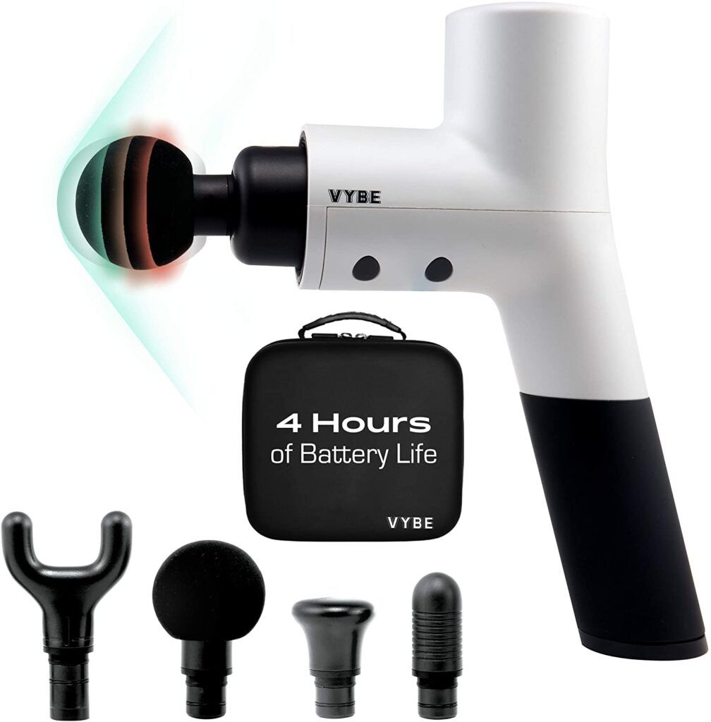 If you’re an athlete trying to take their performance to the next level, you might want to invest in this massage gun. The Vybe Premium Massage Gun will help you improve performance by alleviating muscle soreness and improving recovery time. This powerful deep tissue device includes five intensity levels and four attachments. Additionally, it lasts four hours before needing a charge and is compact, lightweight, and portable.