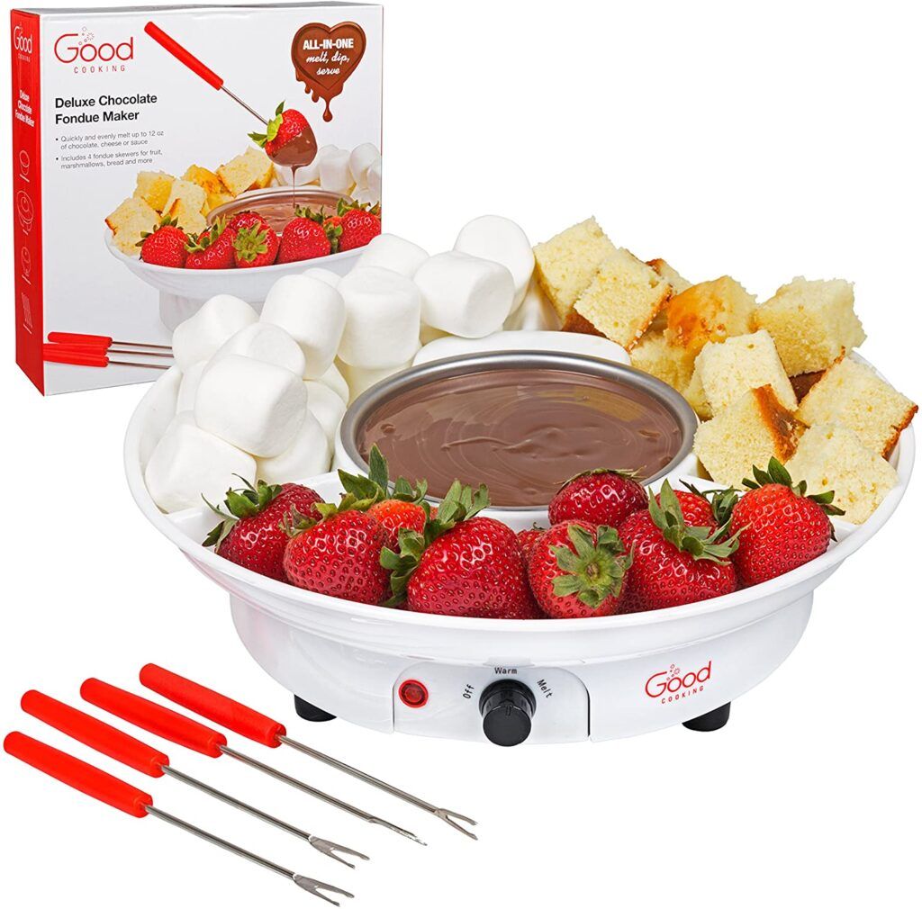 There is nothing better than having a chocolate or cheese electric fondue set when planning your next get-together. You can melt your chocolate or cheese and keep it warm while your guests enjoy the tasty bites with this set. The set is easy to clean with its removable bowl and serving tray.