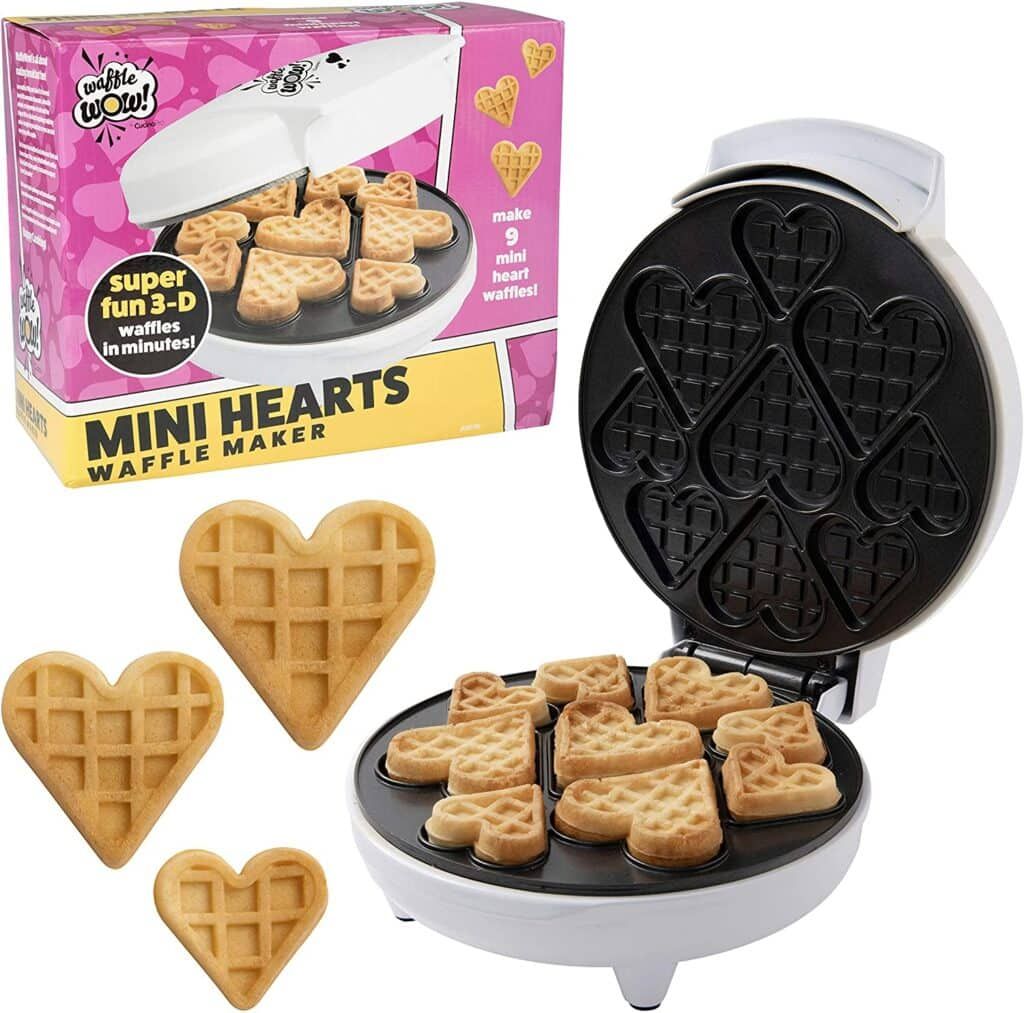 What better way to start your day off than with some cute novelty heart-shaped mini waffles. This Waffle Wow electric mini heart waffle maker makes nine waffles in different sizes, non-stick, and is easy to use. Within minutes you will have 3D waffles perfect for Valentine’s breakfasts and other special occasions.