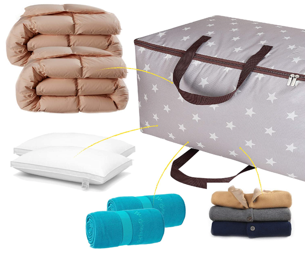 In the summertime, we need a place to store bulky comforters, sweaters, and the like to keep them safe from moths and dust. We’ve been using plastic tubs, but those take up a ton of room. These fabric storage bags are a much better idea – they’re soft-sided, so they can squish into closets or under the bed and are much easier to store, plus they’re moisture-proof and dust-resistant!