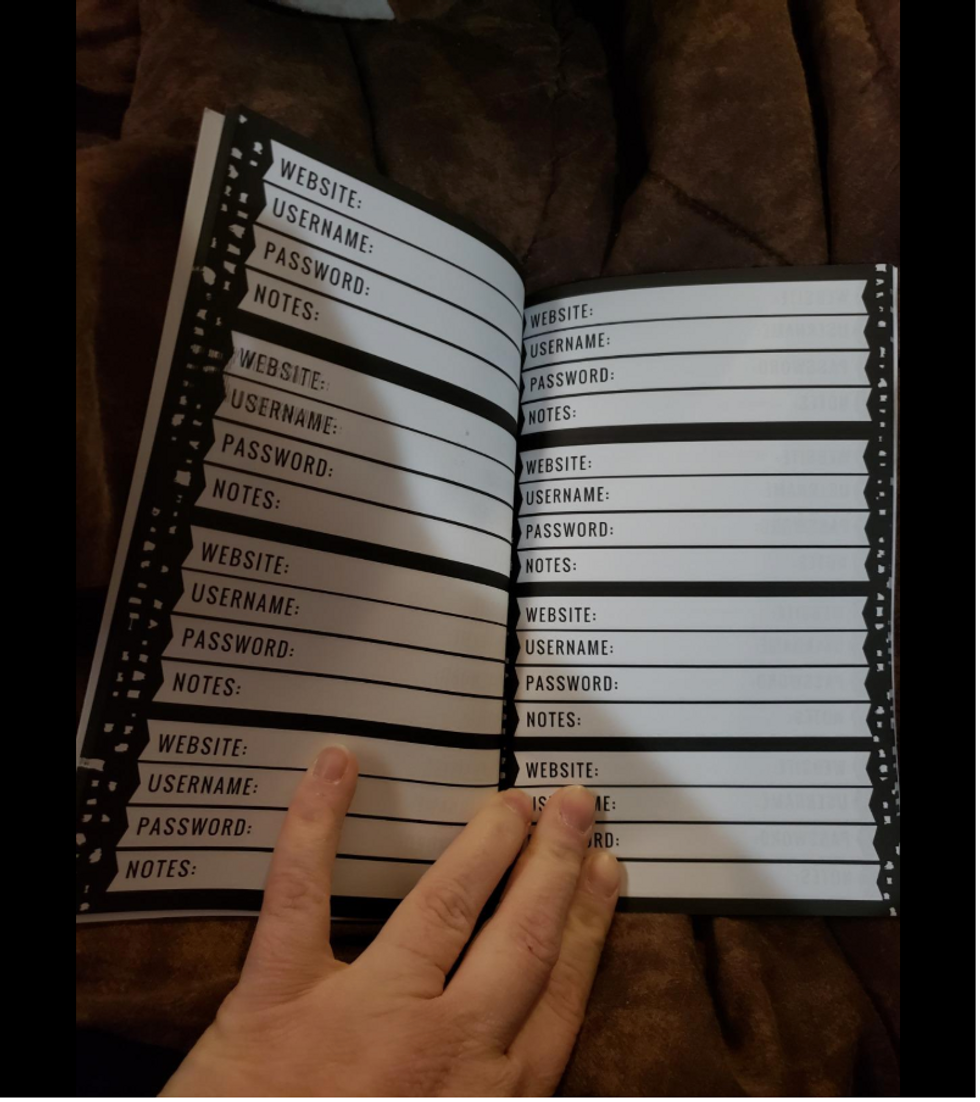 This is awesome I bought it for my mom because she can’t remember her passwords for the life of her haha i think shes going to get a kick out of it!! It has nice large lettering so she can probably see it without her glasses. It has great space to write down all the info you need to remember!!! – Cristy-ann Latulippe