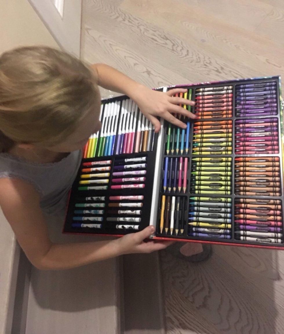 “I buy these art sets as gifts all the time. They are reasonably priced, and are great! No more big containers of broken crayons! No more markers without caps! These sets have little spots for each and every crayon and marker, so my kids actually PUT THEM AWAY. Everything stays organized, and nothing gets lost. We’ve had one of these cases for over a year, and my kids play with it regularly. I’m a big fan.” —Gwaliagirl