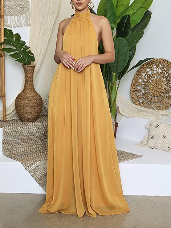 I know we said no dresses and who am I to break a promise? This isn’t a dress, even though it looks like it. It’s actually a one-piece halter-style jumpsuit that has allllll the chiffon overlay. It’s formal in the front and ultra sexy in the back. One reviewer simply said, “This is AMAZING.” Grab it in one of nearly 30 colors for less than $40.