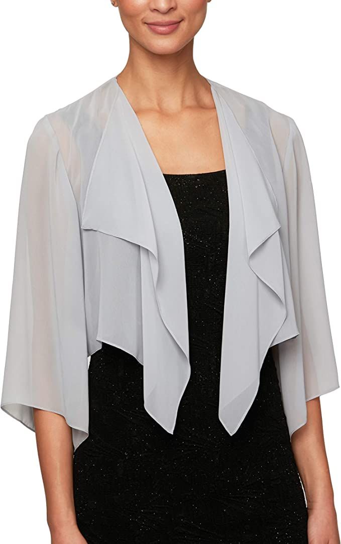 No matter what you’re wearing up top, there are times and locations where you want “a little something” on your shoulders. This short bolero shrug jacket features three-quarter sleeves and goes with just about everything — from a dress to a top. Choose from seven different sheer colors to match your wedding attire. This reviewer gets it: “Got it to wear over a grandmother of the bride sleeveless dress. I never wear sleeveless but loved the dress so took a chance.”