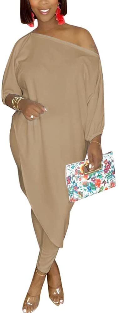 This might be my favorite outfit on the list because it looks oh-so-comfortable but also well-planned and styled. Believe it or not, this is actually a jumpsuit but it’s so well designed that it looks like two pieces — a pair of stretchy pants (because wedding cake) and a long, off-shoulder top that has an irregular hem. If you shun champagne, black, and navy hues, you’ll be pleased with the color selection here.