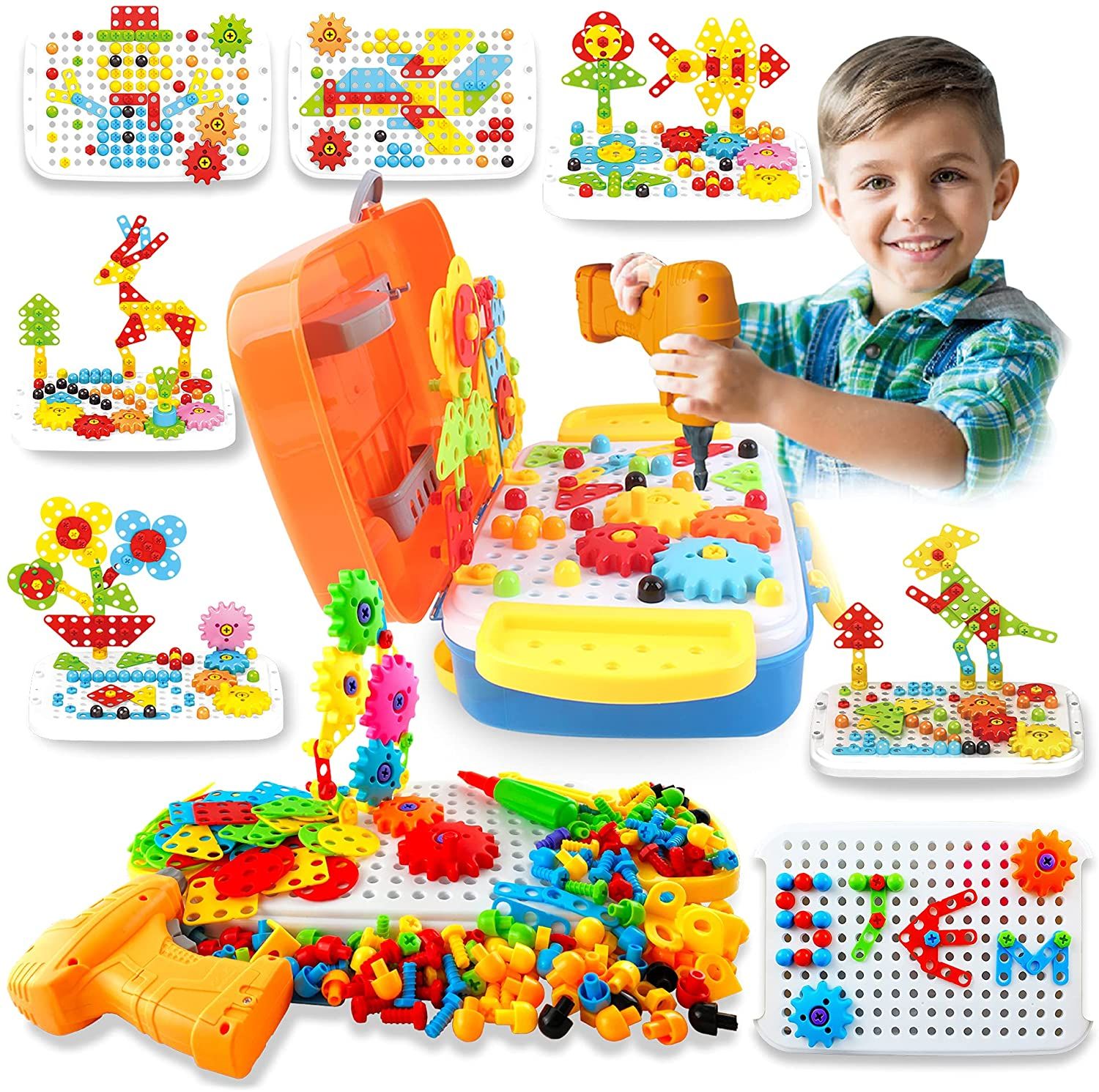Let kids 4-8 years old jump into STEM with this drill building set! Kids will love making creations with the working electric drill that has interchangeable bits, and they’ll learn how gears work! The included book features 66 patterns with three levels of difficulty to challenge and inspire them.