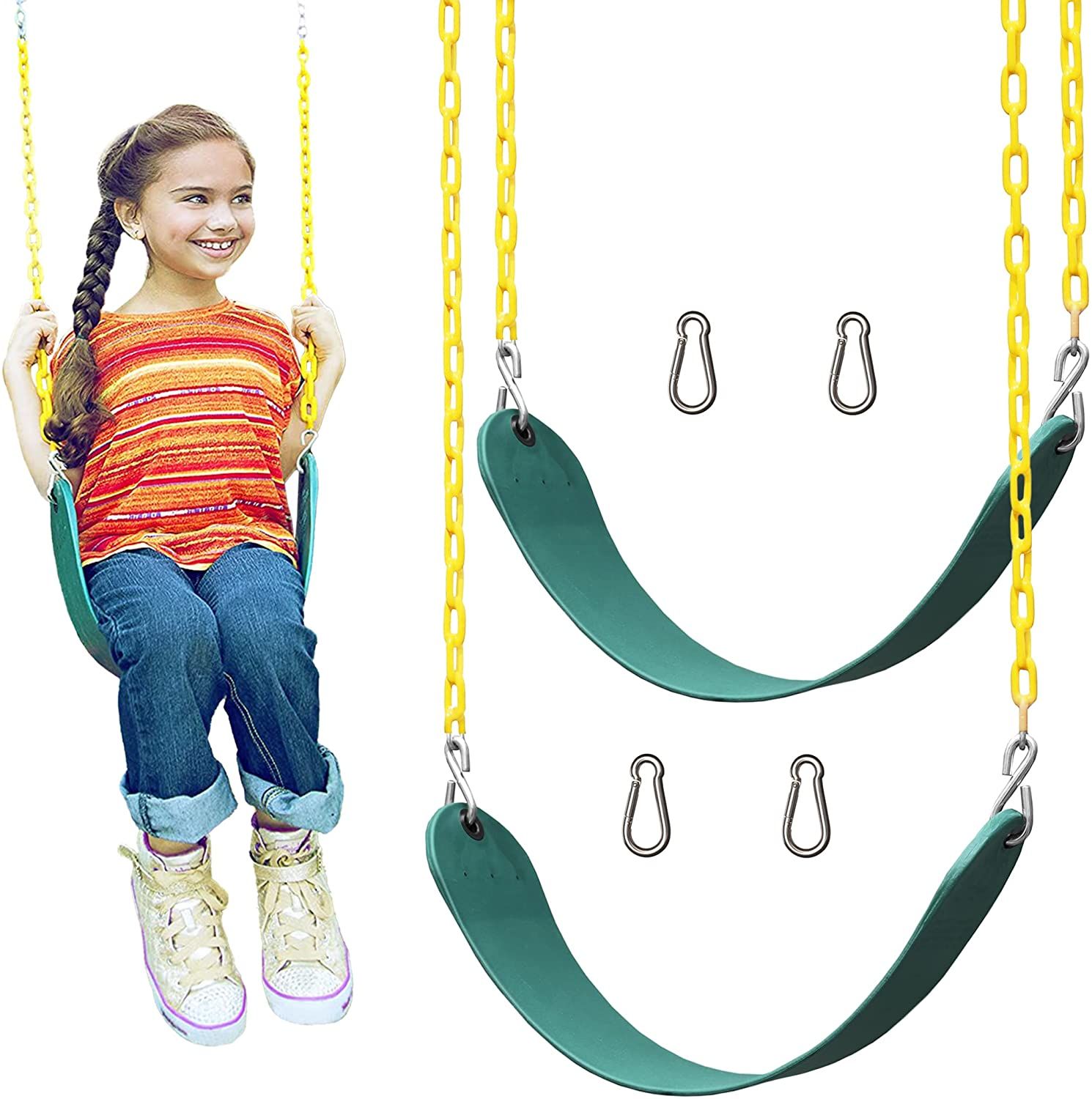 Add to your playset’s fun with this set of two playground swings. We have this exact set, and the heavy-duty parts and plastic seat are still going strong eight + years later! I love that the chains are covered in plastic to prevent finger pinching, unlike the ones we had as kids.