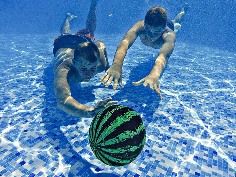 For another unique game to play in the pool, use this watermelon ball. You can dribble it, kick it, bounce it, and pass it around 10 feet underwater due to its natural buoyancy. It fills with water and mimics a true watermelon when placed in water, so you’ll be able to play a wide variety of games.