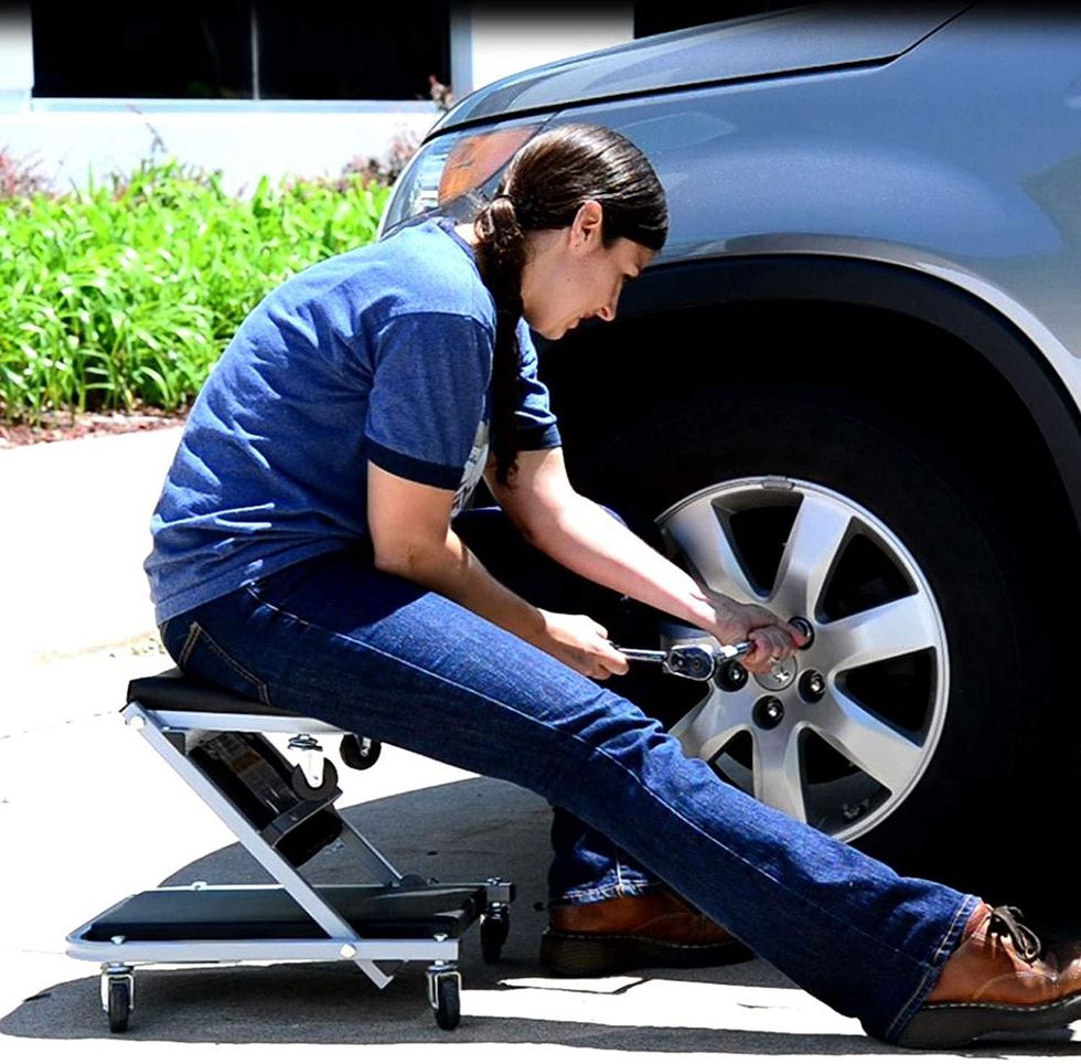 ​I’m not calling you a creeper here, but this is most definitely a creeper seat, which converts from a sit-on stool to a lie-on rolling bed to solve all manner of automotive issues. Thick padded cushions make this a comfortable option for maintenance and swivel casters keep it easily maneuverable. A retractable pin transitions this from a seat to a bench that supports up to 300 pounds.
