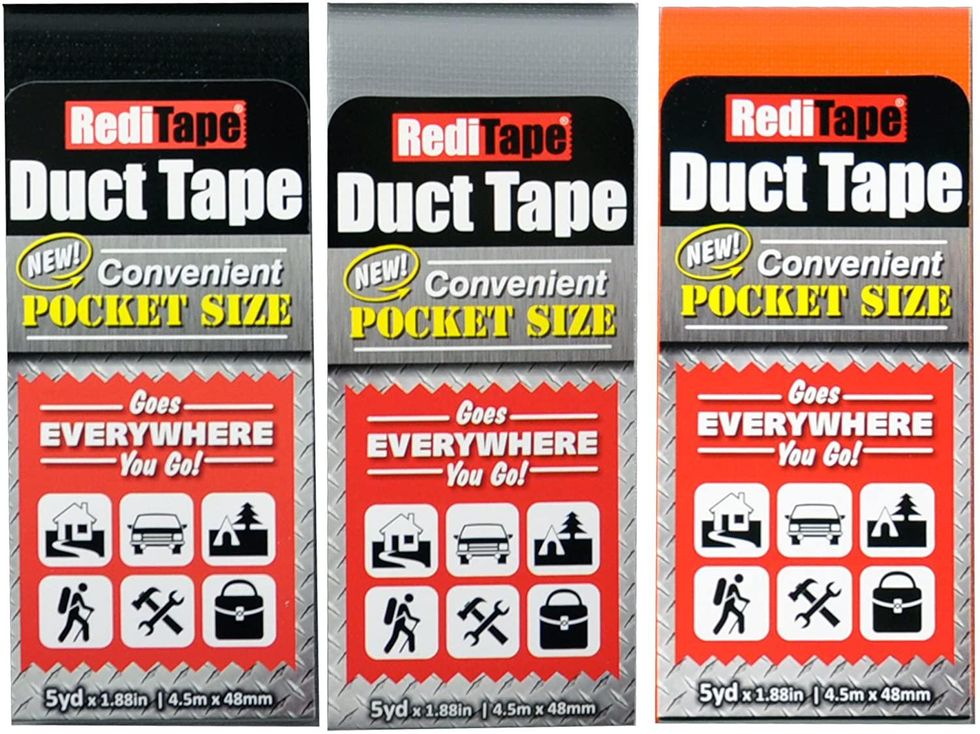 Duct tape solves everything — just ask any man in a four-block radius. This pocket-sized duct tape is folded flat for easy transport and comes in three colors; this one is black, orange, and silver. Use it for camping, hiking, fishing, school, cycling, travel, emergencies, auto, crafts, and anything else you can dream up. Strong and durable, the whole kit weighs less than two ounces.
