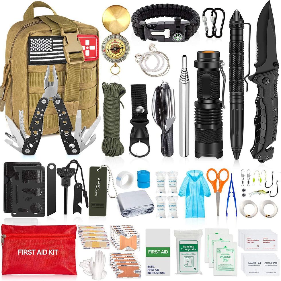 Usually, emergency survival kits have two or three helpful things in them and loads of stuff that isn’t. Helpful, that is. This 200-piece emergency kit is packed full of the good stuff, though, like medical supplies, fishing gear, a compass, firestarter, and tactical defense whistle. It also comes with a first aid kit with bandages, wound and alcohol pads, and a whole lot more.