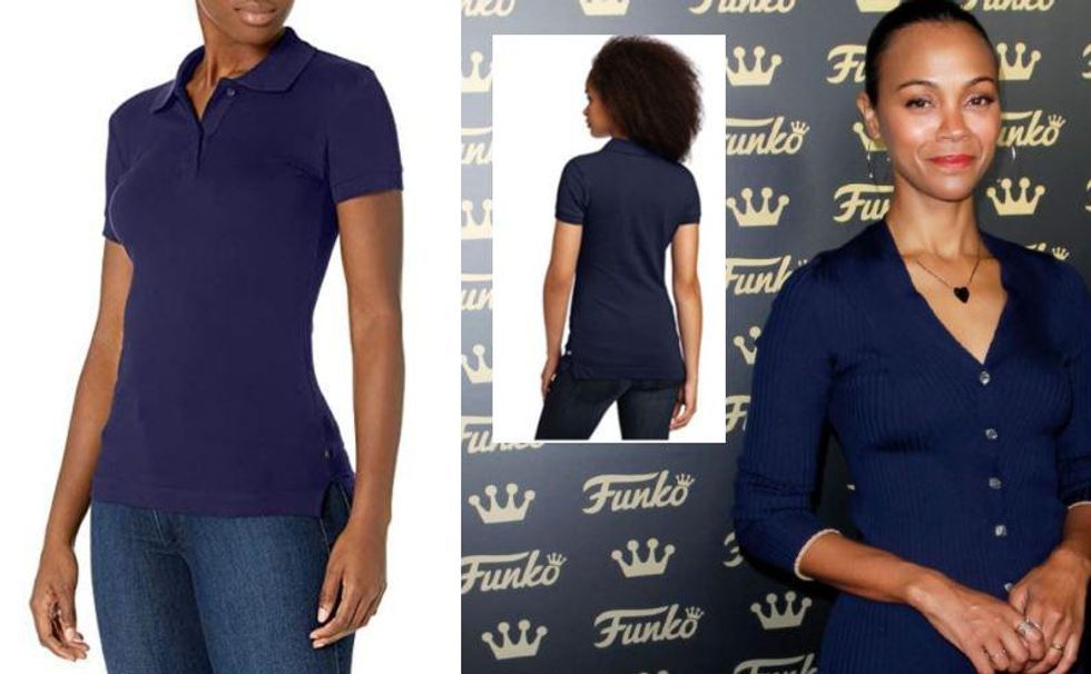 Zoe Saldana is both stylish and practical and this navy-blue buttoned top I found on Amazon reminded me of her look.
