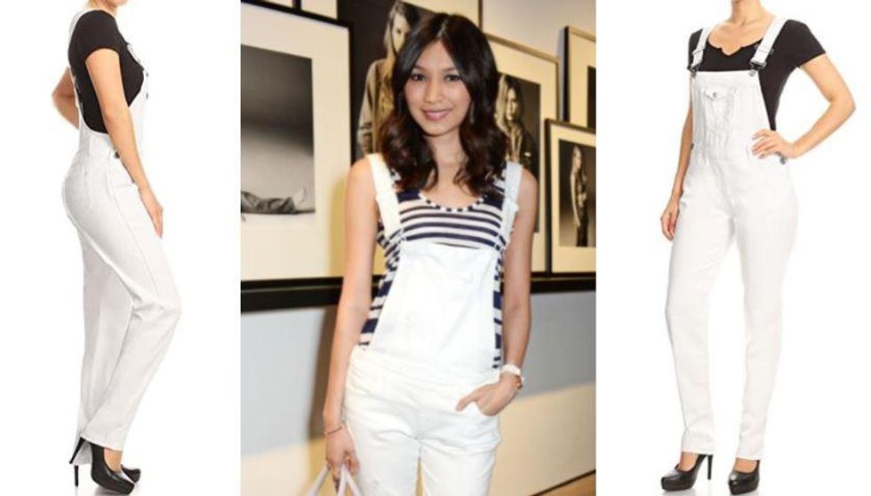 Create Casual Elegance with Gemma Chan’s White Denim Overalls