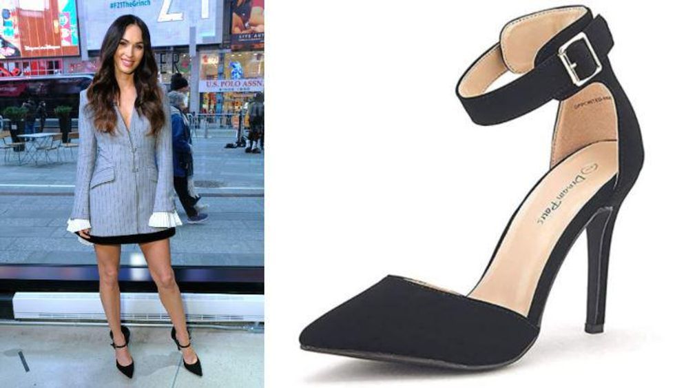 Megan Fox wears hers with a suited blazer and you can replicate her pumps through Amazon. I bought these for summer and have been wearing them all the time.