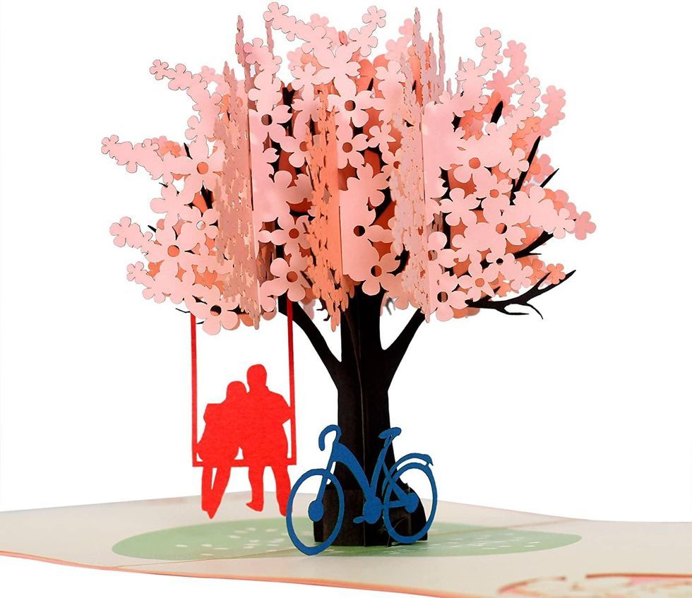 Though the Amazon page for this product mentions Mother’s Day, this gorgeous pop-up card can be given on any occasion. There are no words printed in it. Instead, it’s all about the amazing visual story of a cherry blossom tree scene. It comes with a small notecard to write your thoughts and insert them in the envelope without writing directly on the artwork itself.