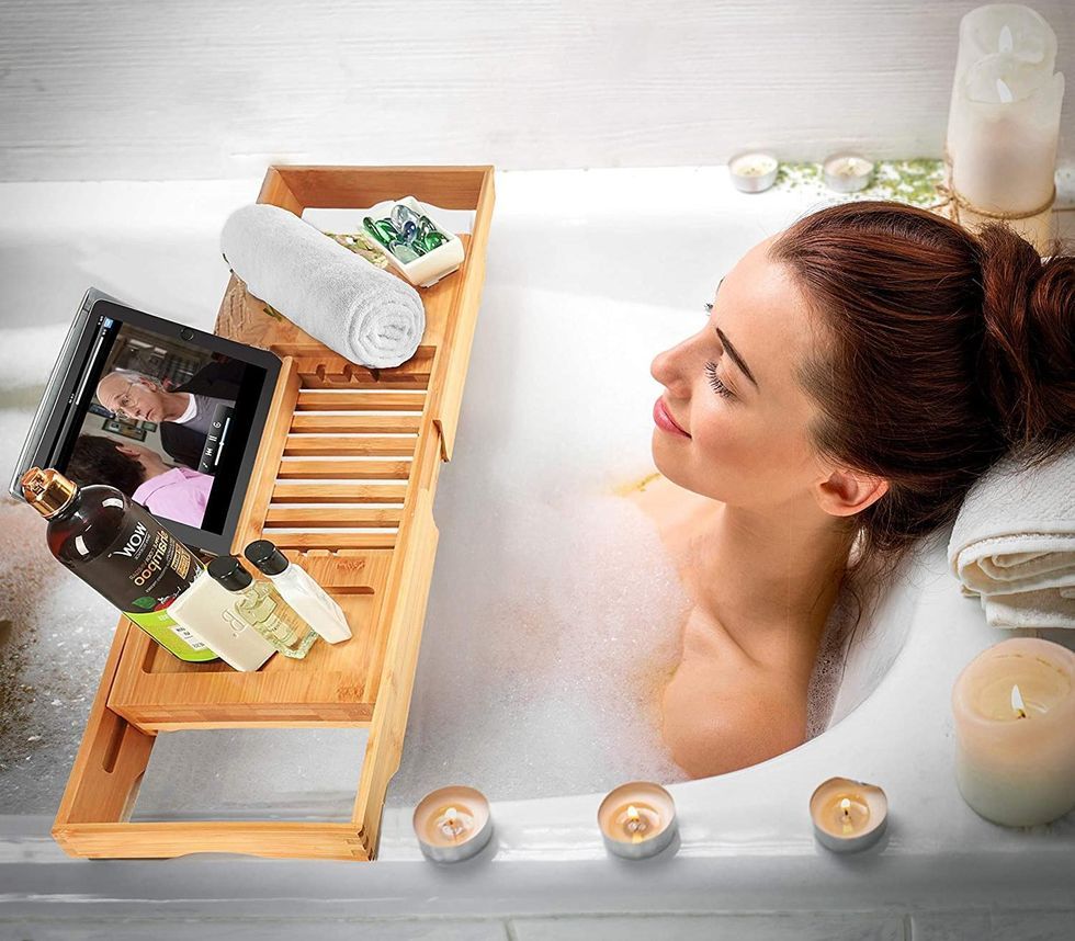 Why not spend all evening soaking in the tub and watching YouTube videos? Or maybe marinate in a bubble bath while reading a book and sipping wine? This bathtub tray will let you keep all your favorite things close at hand while you luxuriate. It’s extendable, so you can get just the right width to fit across your tub.