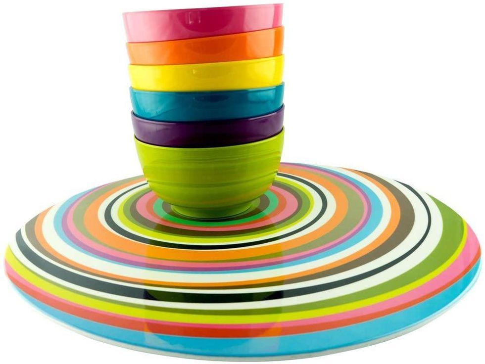 Talk about a colorful pop of fun! This spiral-print serving platter is a Lazy Susan. Just set it on the table and top it with small dishes. Guests can turn it this way and that to get the item they’re looking for. Let’s just hope those spirals and the rotating don’t get anyone so dizzy they pass out in the guacamole!