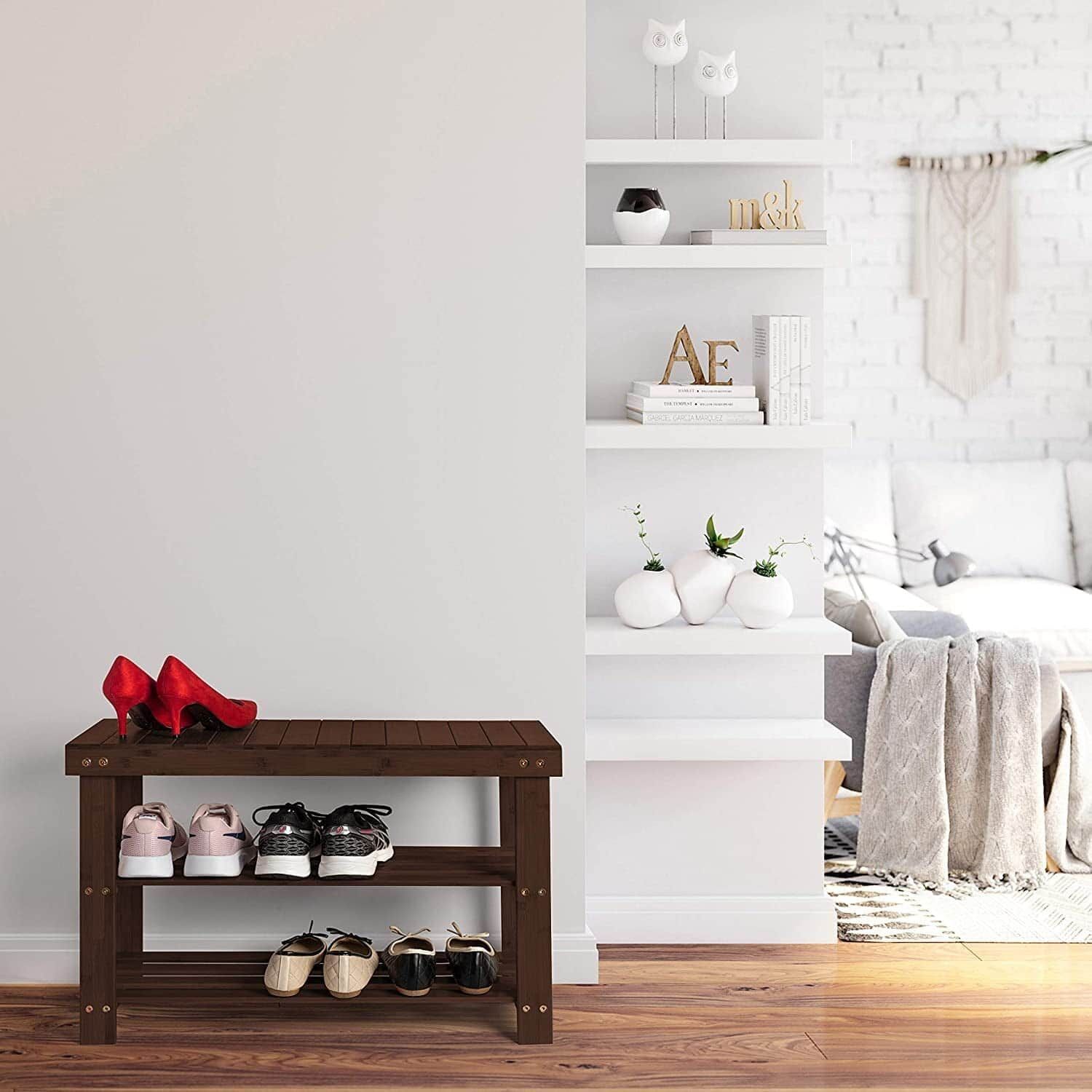Who couldn’t use a little more useful space in the unuseful areas of our homes? This three-tier shoe bench is both a convenient storage solution as well as a resting place for getting in or out of the house. You’ll have room for up to four pairs of shoes per shelf and a top rack that can be used as a seat or extra storage for briefcases and gym bags.