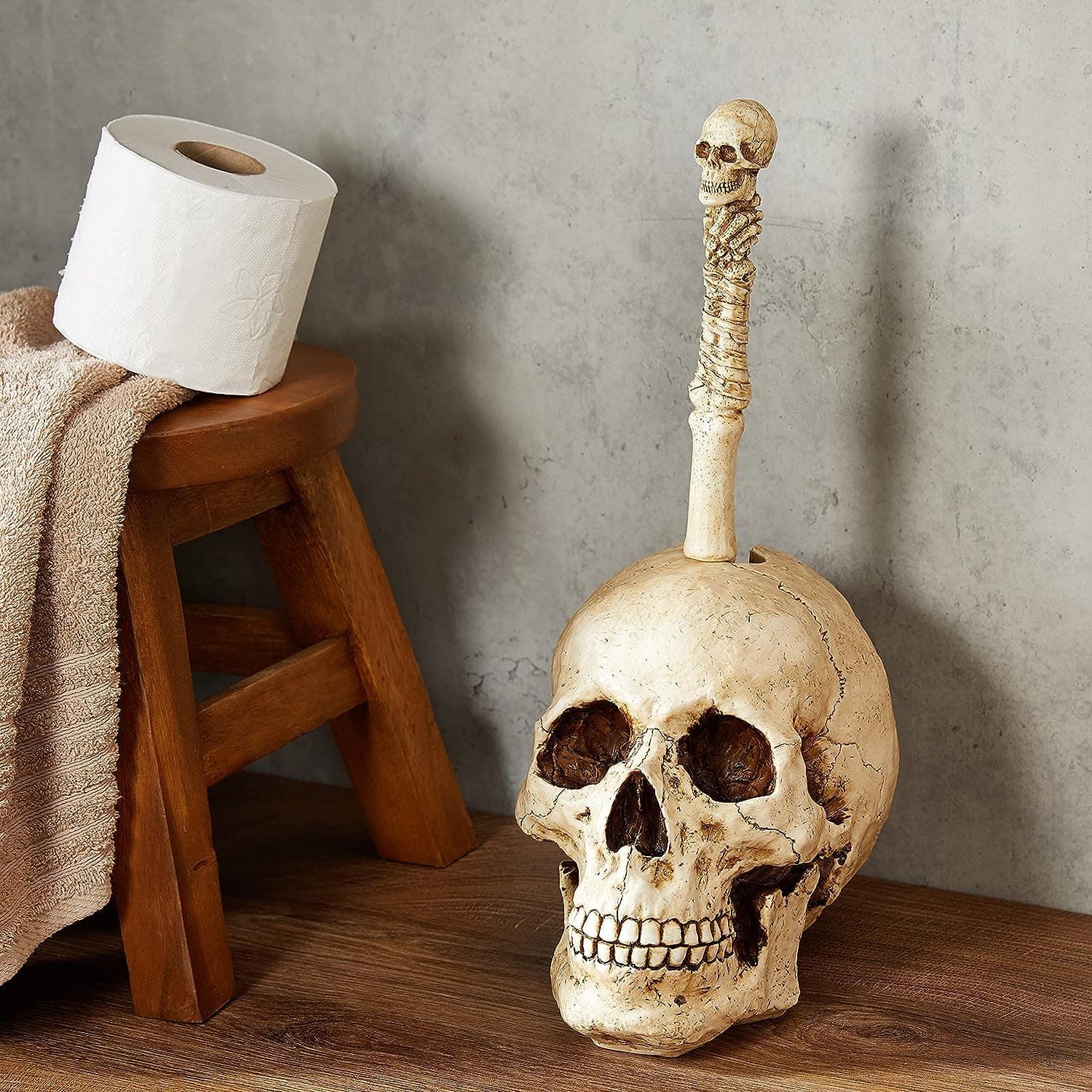 Don’t worry, he won’t be a “head”ache to deal with! This skeleton scrubber is all set to lend a bony hand in toilet bowl duty – the ultimate gothic twist to your bathroom decor. It’s the zombie world’s toilet brush holder of choice – because even the undead need a clean throne. Crafted from high-quality crushed stone and designer resin, this skull-brushed buddy is here to make your bathroom routine as amusing as it is eerie.