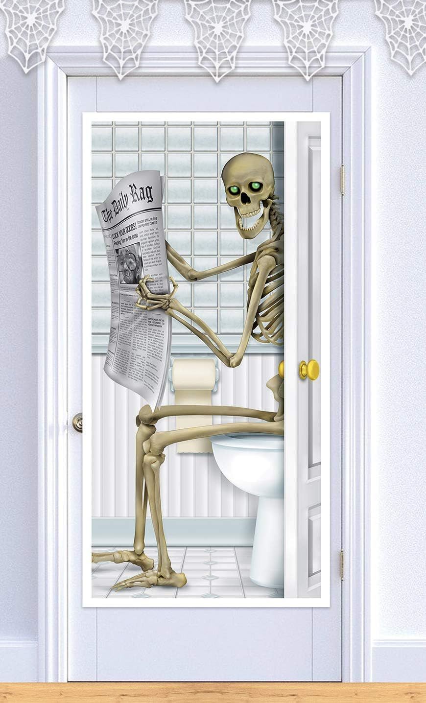 Oh, excuse me, I didn’t know this room was taken. Give everyone a fright with this funny skeleton door cover. As easy to hang as tacking up each corner with a bit of tape, this giant mural will give your bathroom users a scare — and a laugh. Just don’t wait until the last minute to go potty, O.K.? You just might not make it.