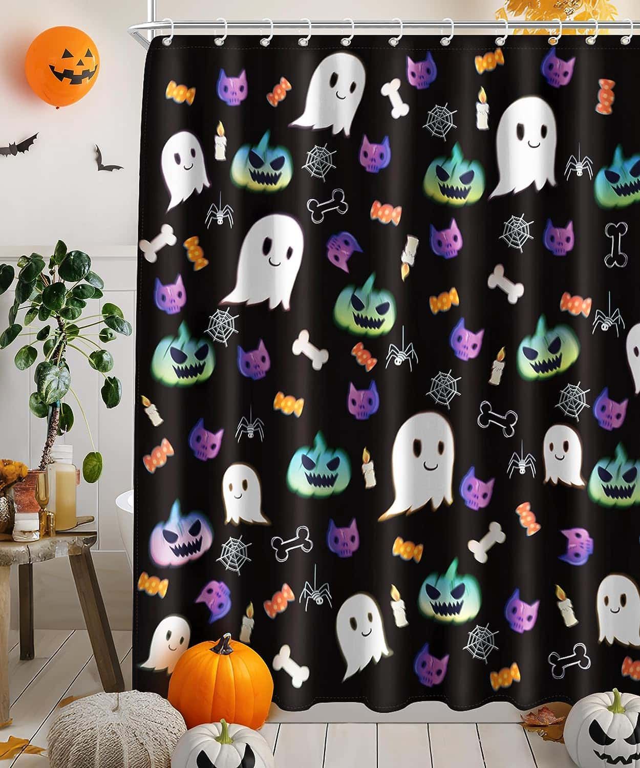 Step into a Halloween wonderland with ghosts, pumpkins, and spiders – oh my! This shower curtain isn’t just 100% polyester, it’s 100% ready to haunt your bathroom with smoothness and style that’ll outlast even the spookiest of nights. It’s quick to dry, just in case you need a quick escape from the ghouls, and machine washable – because even Halloween decor needs a bath sometimes.