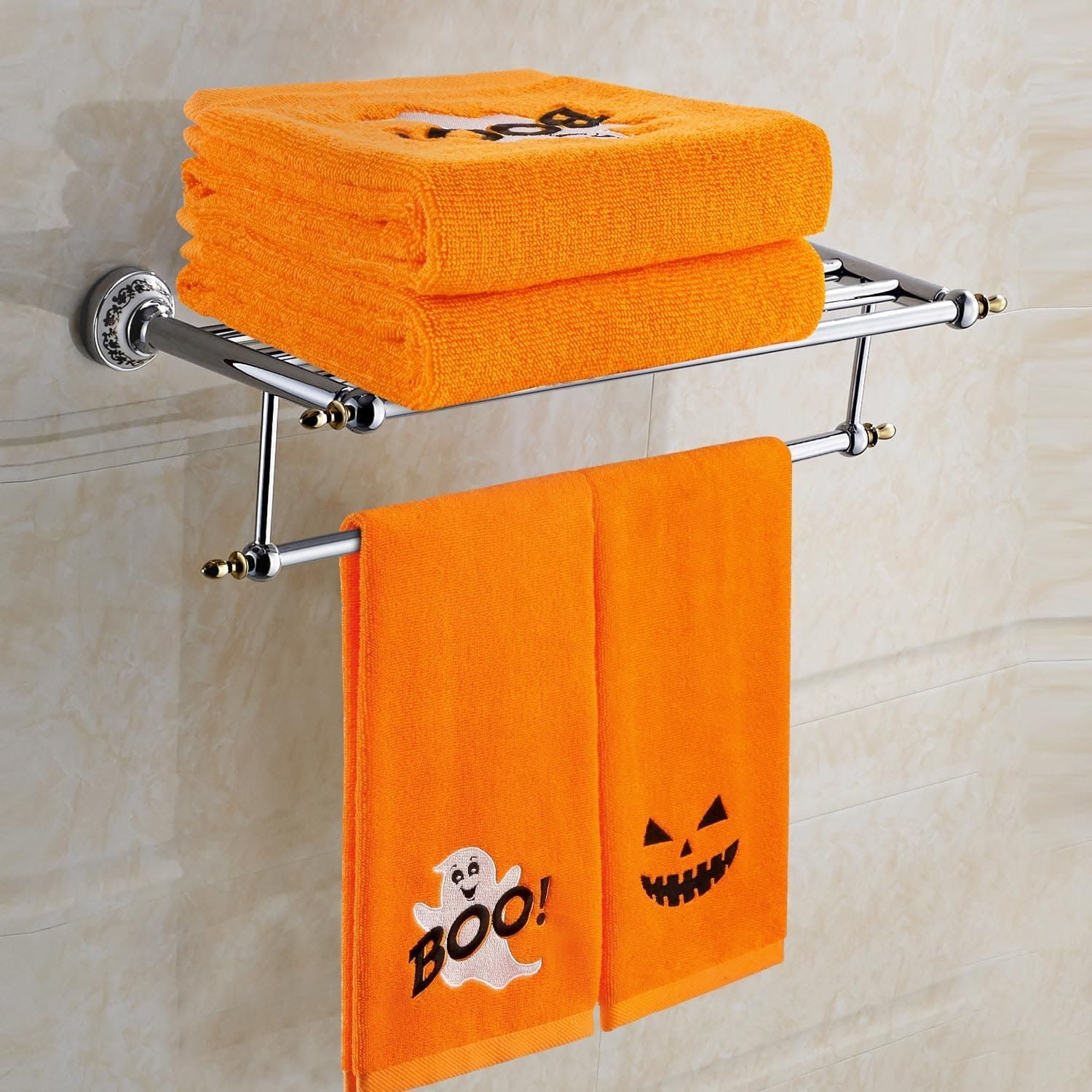 Prepare for towel terror with this Halloween-themed duo! The first orange towel’s got BOO + a ghost, and the second’s got a “look of horror” – talk about expressive linens. Made from 100% cotton, they’re soft, absorbent and spookily durable. Perfect for adding a touch of Halloween to any bathroom, it’s also a great gift idea that’ll raise eyebrows and bring laughs. These towels are ready to haunt your home.