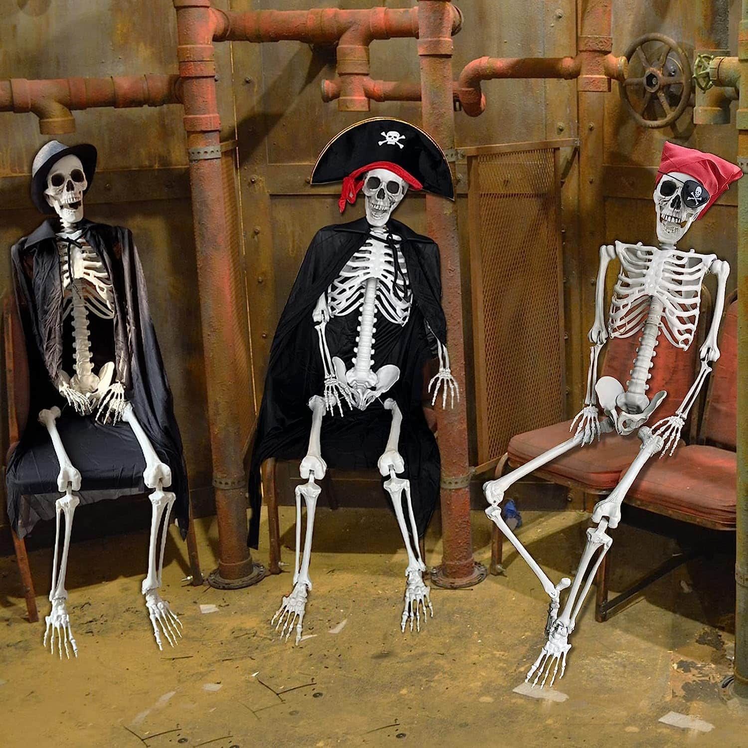 Introducing your new bathroom buddy – this large-as-life skeleton with a swashbuckling twist! Arr matey, this skeleton sports a pirate bandana and eyepatch to guard your loo with style. Assembly’s a breeze – just connect the parts and hang it like a pro. With bendable joints, you can give this bony mate any pose from lounging to hanging naturally. Just remember, it’s the only guest always up for a bone-chilling conversation!