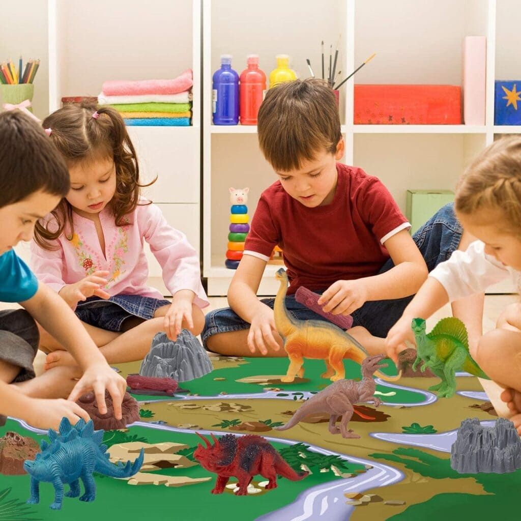 Do you have a little one who loves dinosaurs? If so, we have the perfect toy for them. These dinosaur toys are realistic-looking seven-inch figures with an interactive sound book, activity play mat, tree figures, and rocks. Your child will love playing with these fun toys.