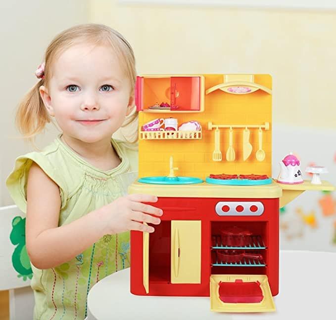 An American girl doll is a special gift for any little girl. If you are an American girl lover, this station will be perfect for your 18-inch doll! This 22-piece doll kitchen play station includes everything from the sink to the stove and fridge. The refrigerator light even turns on when you open it. Your child can pretend they are cooking their favorite dish in the kitchen while being stimulated by the lifelike sounds of running water, clinking dishes, and more. It also comes with two pots and pans, six utensils, and everything to cook up a storm.