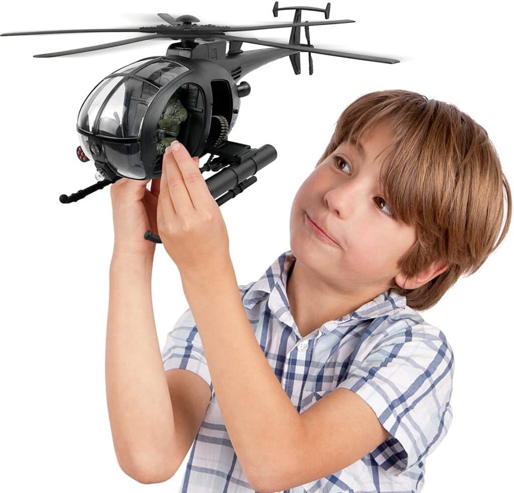 The military attack combat helicopter with helipad 48-piece playset and accessories, you get to build your combat helicopter. The set comes with 48 pieces that kids can snap together in various ways. This is an excellent gift for any child who loves building things or pretending they are at war.