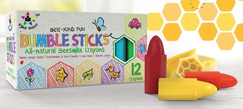 These 100% pure beeswax crayons are safe for toddlers, kids, and children. These crayons are handcrafted in New Zealand from pure beeswax to ensure safety and quality. The set has 12 jumbo crayons that come in various colors, including black, brown, blue, green, and more!