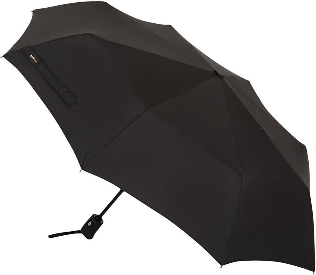 Shelter yourself from the storm with this handy umbrella. This model packs up compactly, allowing you to stow it away in your carry-on or purse so it’s always in easy reach when you’re traveling and the sky suddenly opens up.
