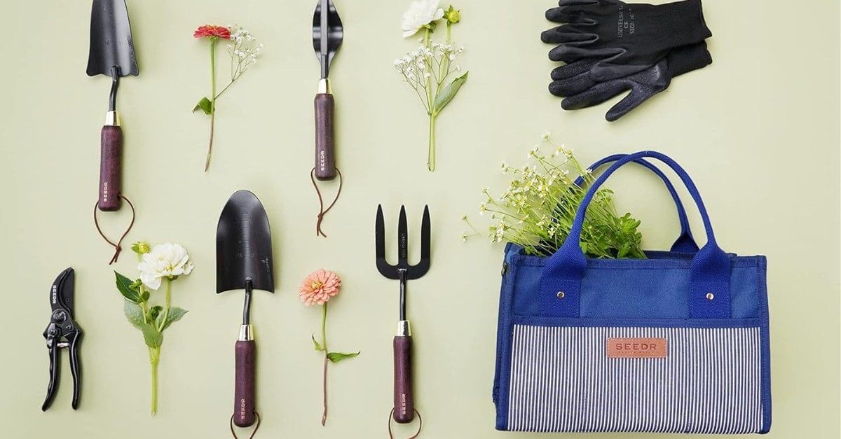 This 7-piece set includes essential tools like a trowel, cultivator, transplanter, weeder, bypass pruning shears, and gardening gloves, all neatly organized in a durable garden bag. Crafted from sturdy stainless steel with walnut-stained wooden handles, these tools blend modern elegance with rust-resistant metals, ergonomic designs, and a water-resistant tote bag.