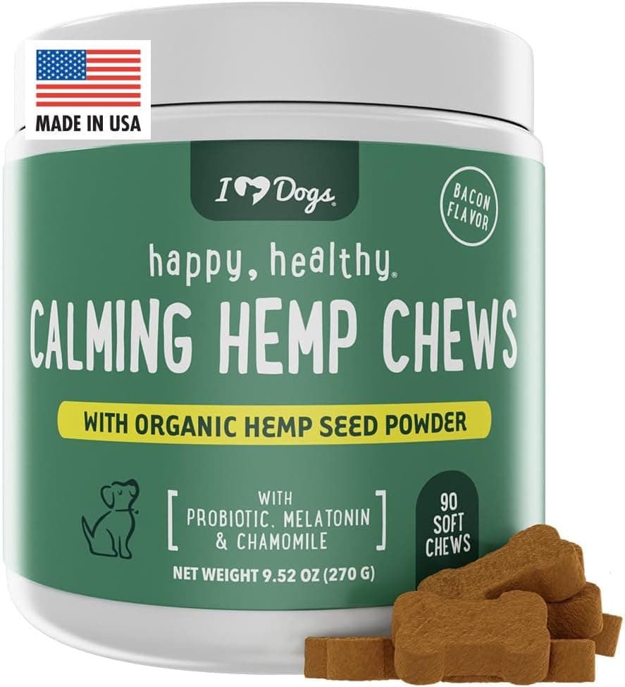 Chill out, Fido! iHeartDogs 9-in-1 Calming Chews got your back. They’re like doggy spa day in a bite. Hemp, melatonin, and chamomile – the canine dream team for taming anxiety. So, relax, Rover. No need to chase your tail over stress anymore.
