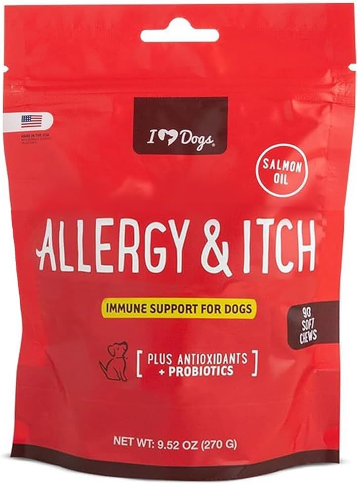 Looking for an itch-relief party for your four-legged buddy? Feast your eyes on the iHeartDogs Allergy & Itch Relief on Amazon. It’s like a disco dance for your dog’s skin – salmon oil, quercetin, and probiotics groovin’ together. Scratches? Nah, just some funky moves!