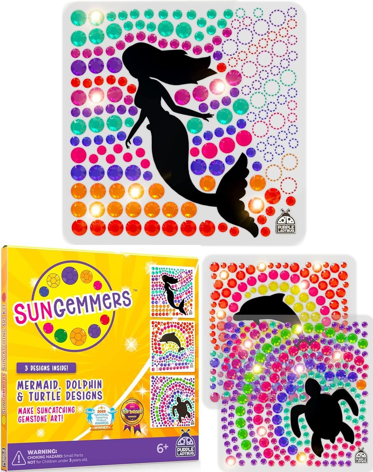 Calling all aspiring artists aged 6-10! The SUNGEMMERS Big Gem Mermaid & Dolphin Diamond Window Art Suncatcher Kit is here to turn your window into a masterpiece. It’s like having mermaids and dolphins on speed dial, ready to make your glass canvas the envy of the ocean.