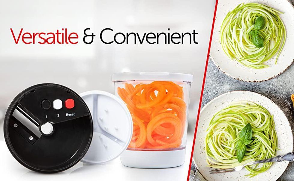 If you’re trying to cut down on carbs, but you’re not quite ready to give up pasta yet, you’re in luck. More and more recipes are calling for squash, carrots, or zucchini as noodles. The only downside to this creative yet delicious pasta alternative is that it’s time-consuming. Or should I say was? This veggie spiralizer allows you to quickly turn your favorite veggies into fun spirals with very little effort. So don’t stress about giving up spaghetti or alfredo quite yet.