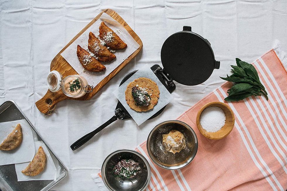 If you get those taco trays I mentioned earlier, then you most definitely need this tortilla press too. The cast-iron plates are engineered to avoid pinching, giving you evenly cooked tortillas every time. Make your own quesadillas, empanadas, and more!
