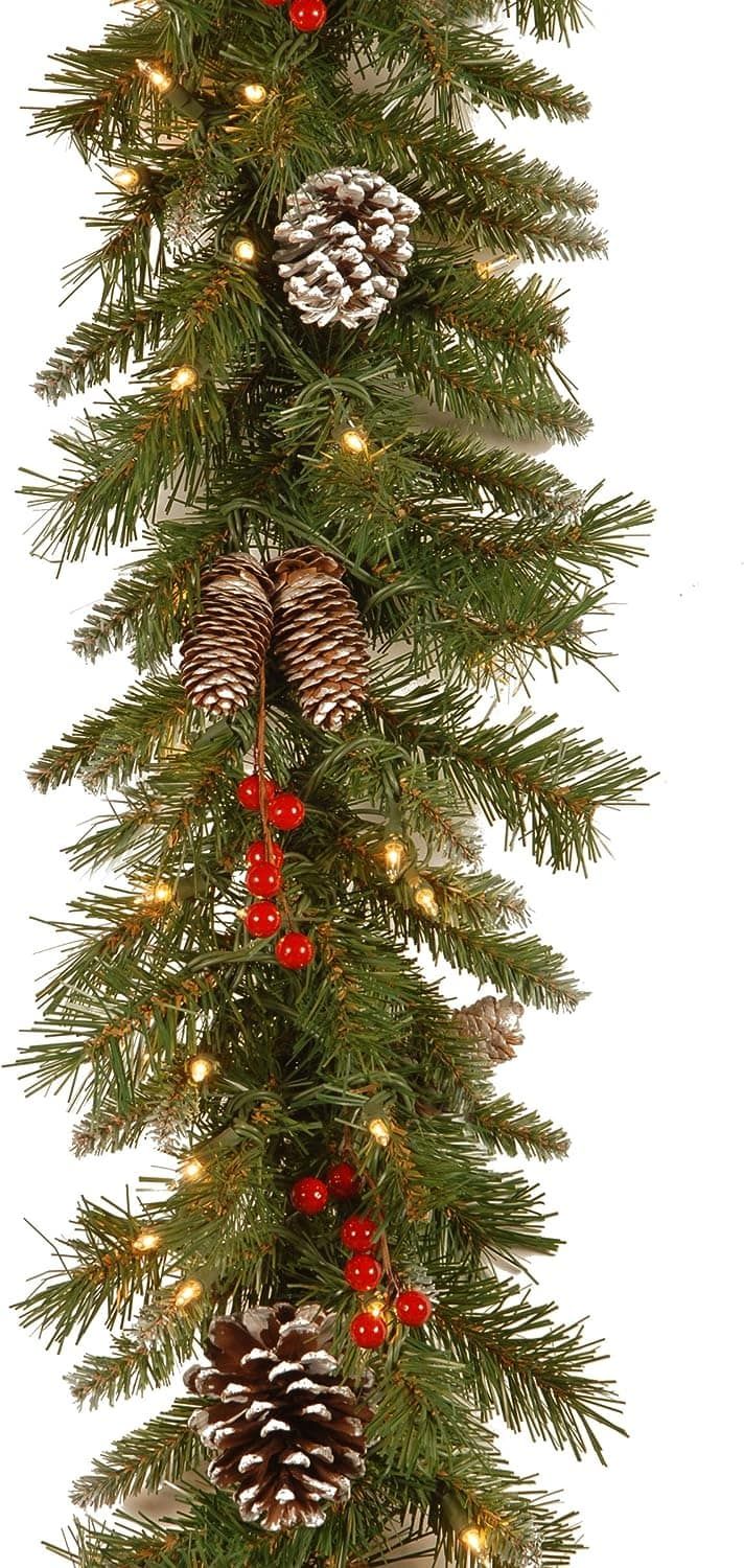 Deck the halls with this festive frosted berry Christmas garland. At nine feet long and adorned with pine cones and berry clusters, it’s like Mother Nature decided to join the decorating committee. Whether indoors or outdoors, it’s ready to spread the holiday cheer, and it’s built to last longer than fruitcake.