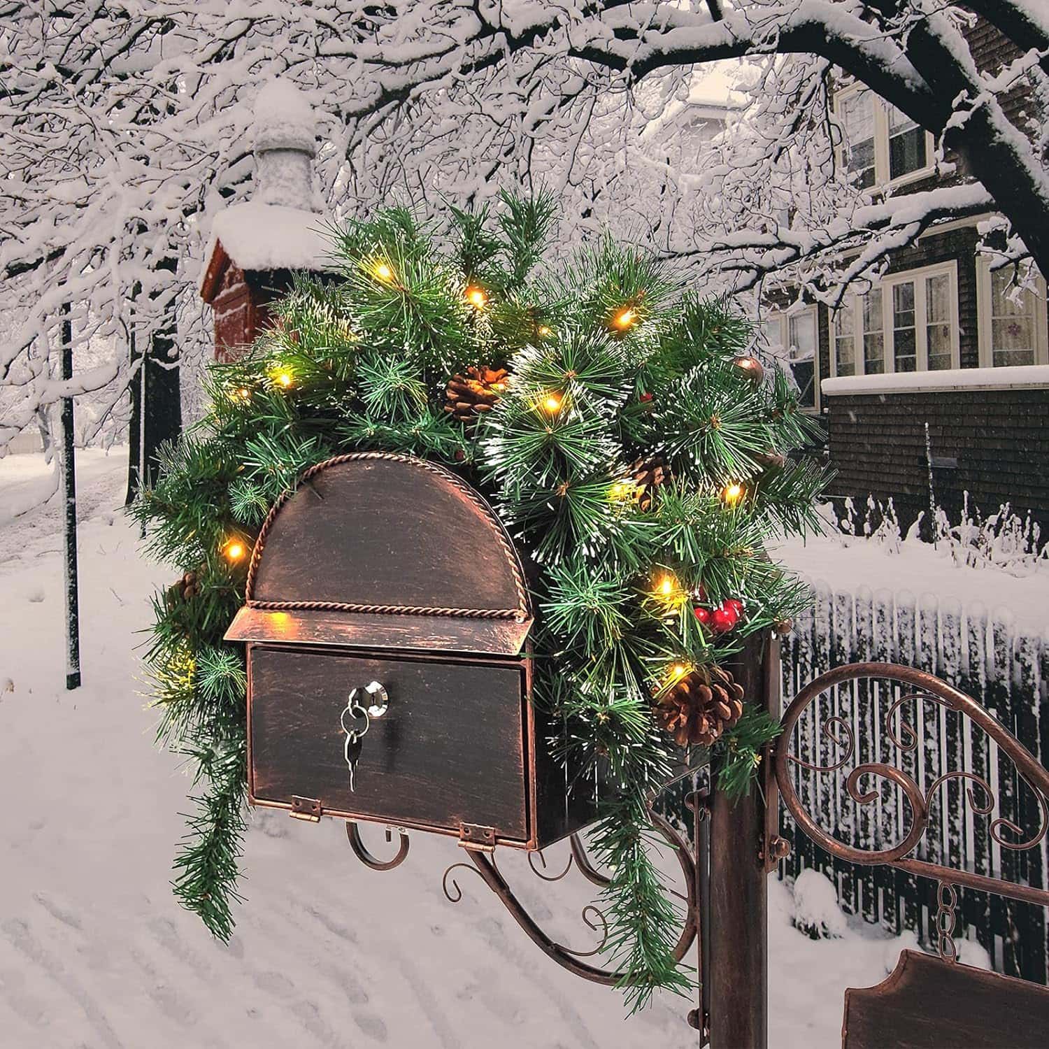 Turn your mailbox into a Christmas superstar with this lush and fluffy decorative swag garland. With 100 PVC branches, it features pine cones and red berries sprinkled like holiday confetti for that extra festive touch. And, let’s not forget the 30 warm white LED lights — it’s like a starry night right at your doorstep! Perfect for transforming your mailbox or any other space into a holiday wonderland.
