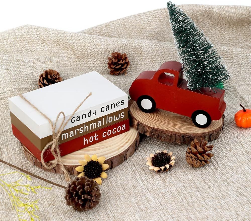 Let there be light! This LED-lighted tree is here to brighten up your holidays. Just pop in 2 AA batteries (not included), flip the switch and watch the magic happen. The individual red truck can cozy up next to the book stack or go solo. Crafted from quality wood, it’s built to last. Whether it’s on your table, coffee bar or shelf, it’ll bring a festive vibe to any spot.