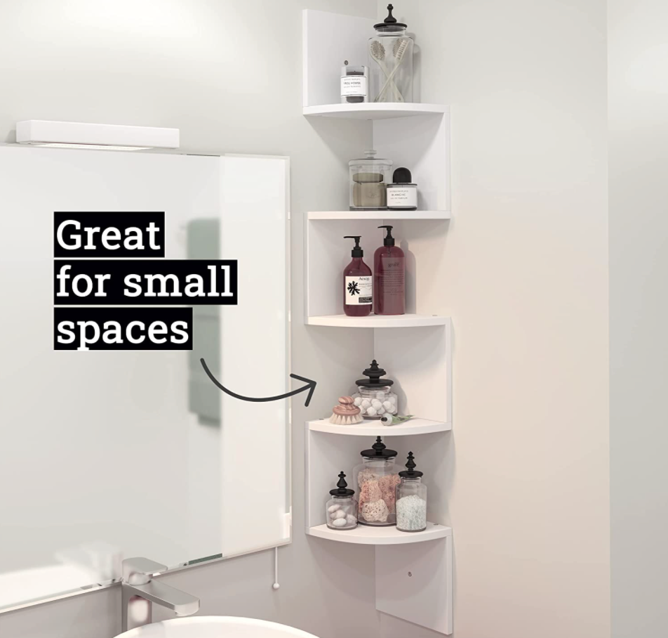 This 5-tier shelf design comes in eight different colors and is Amazon’s best choice too. If you’re anything like me, you hate clutter, and love a minimal finish! Well, these shelves are the thing you’ve been searching for…and here’s what this shopper had to say: “Assembly was easy and good directions to follow. I was so satisfied I bought another to compliment it on another corner…”