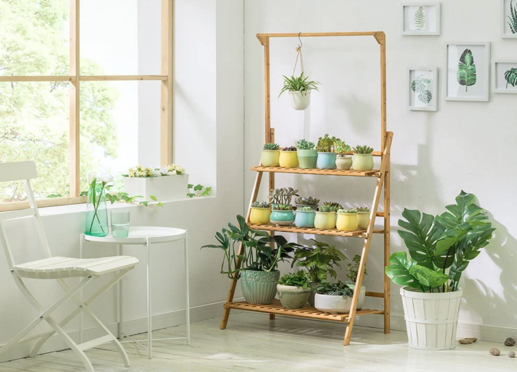 This three tiered shelf is ideal way to brighten up a corner that needs some life. This bamboo shelf can fit perfectly with your indoor decor, or even outdoors too. It is sturdy and easy to install. A perfect way to decorate with a low price tag.