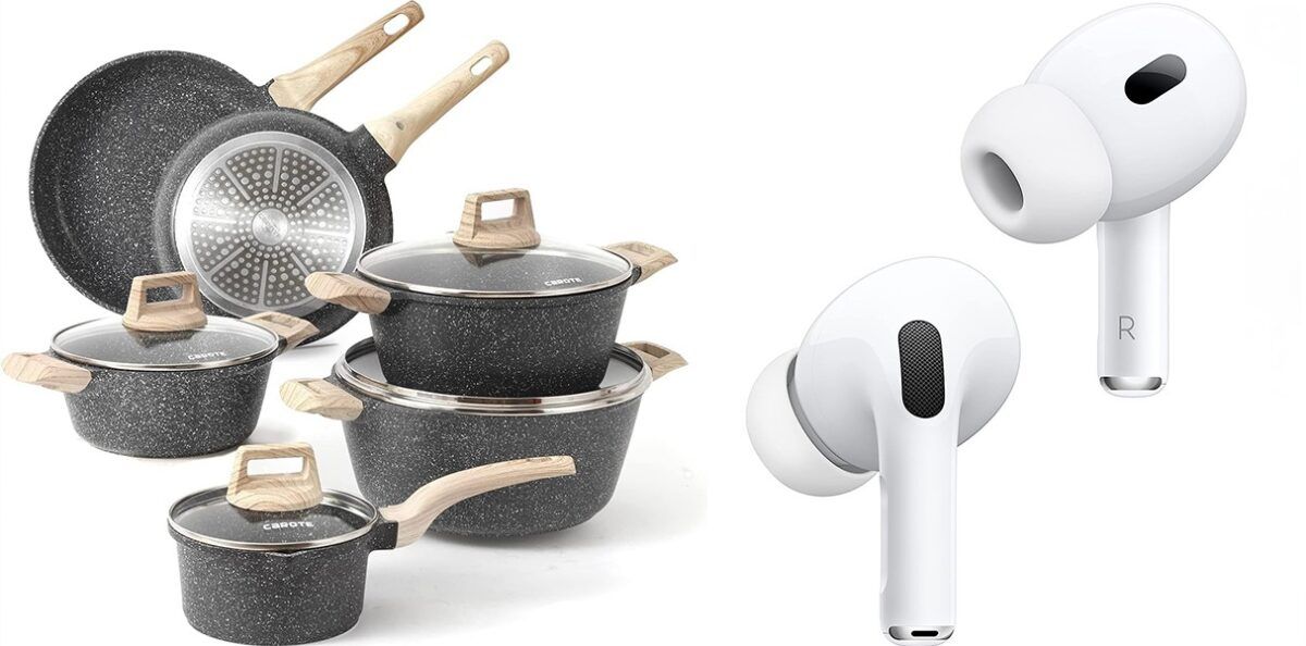 Cook up a storm with the CAROTE 10-Piece Cookware Set! This eco-friendly dream kit comes in classic granite non-stick material, ticking all the health-safe options – PFOS, PFOA free. You’ve got frying skillets, casserole pots, and a saucepan, all easy to clean and suitable for all kinds of stoves. And hey, if there’s an issue on delivery, fear not, you’re covered by their solid guarantee.