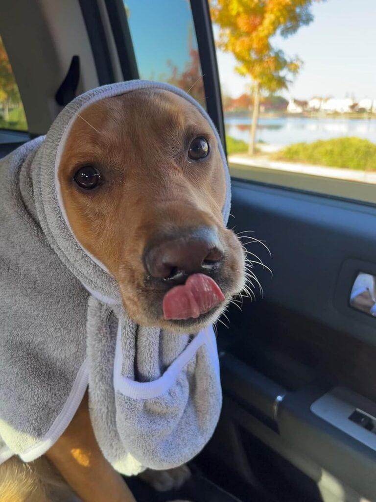 The unique ear-shaped drying pockets masterfully tend to their face, neck, and tricky areas. It’s extra convenient by being machine washable and dryer safe!