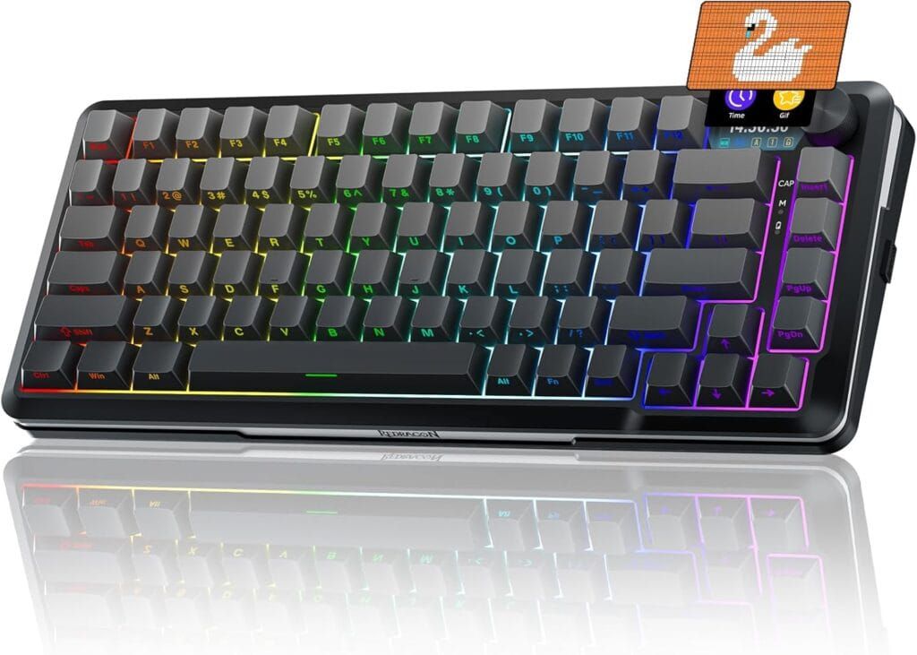 The Redragon Wireless Mechanical Keyboard stood out from the pack by combining premium features like hot-swappable switches, wireless connectivity, and a smart LCD screen at an unbeatable price point. For those who prefer the quiet reliability of membrane switches, the Corsair K55 RGB PRO impressed us with its spill-resistant design and incredibly low price tag. Elsewhere, competitive gamers will gravitate toward the NuPhy Field75 HE, which delivers cutting-edge magnetic switch technology and adjustable actuation points that can provide a genuine competitive advantage.