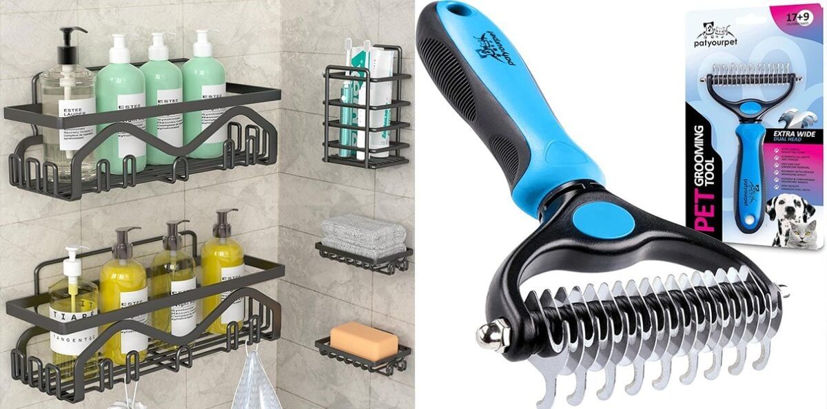 Check this out, this 5-piece hanging shower organizer is a serious space-saver! Included are 2 shower caddies, 2 soap holders, and a toothbrush holder plus adhesives. It’s ultra-durable (think rustproof & waterproof) thanks to its premium stainless steel build. Good for up to 40 lbs; it won’t crash down on you.