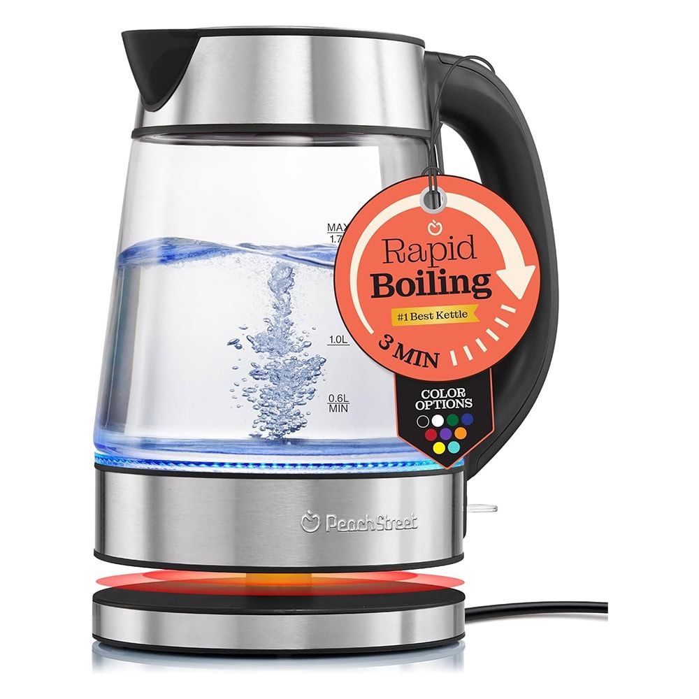 This electric kettle boils water in minutes so you can enjoy your cup of coffee or tea without having to wait a long time. The auto-off feature shuts off the kettle once the water is boiled and the corded base frees up the kettle so you can easily bring it wherever you want.
