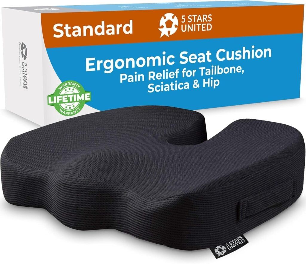 If you work for hours at a time from the same chair every day, provide some support and comfort to your day with this memory foam seat cushion. It helps to evenly distribute body weight to help with posture, increase blood flow, and alleviate back pain.