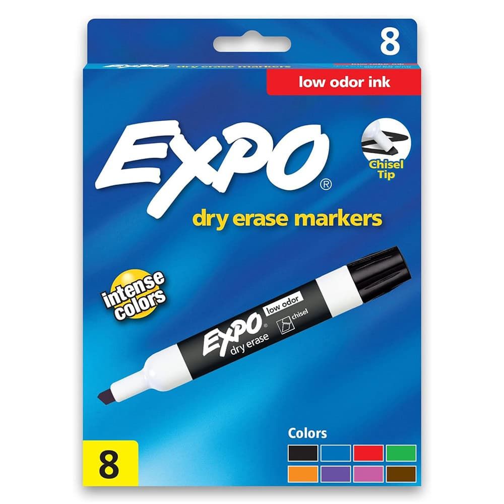 You can’t go wrong with these super-pigmented dry-erase markers. This pack comes with eight colors with a chisel tip so you can customize your lines and write efficiently on your whiteboard.